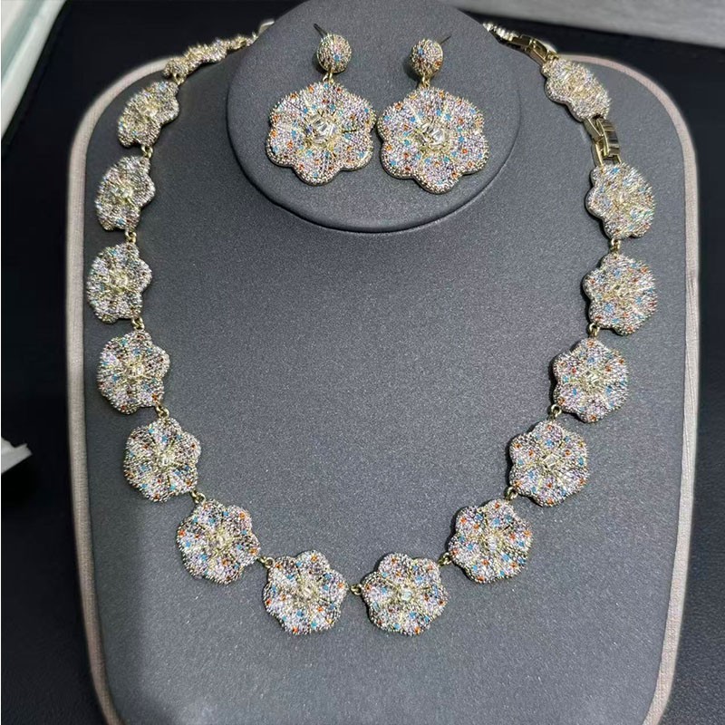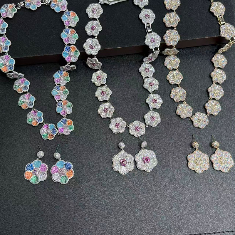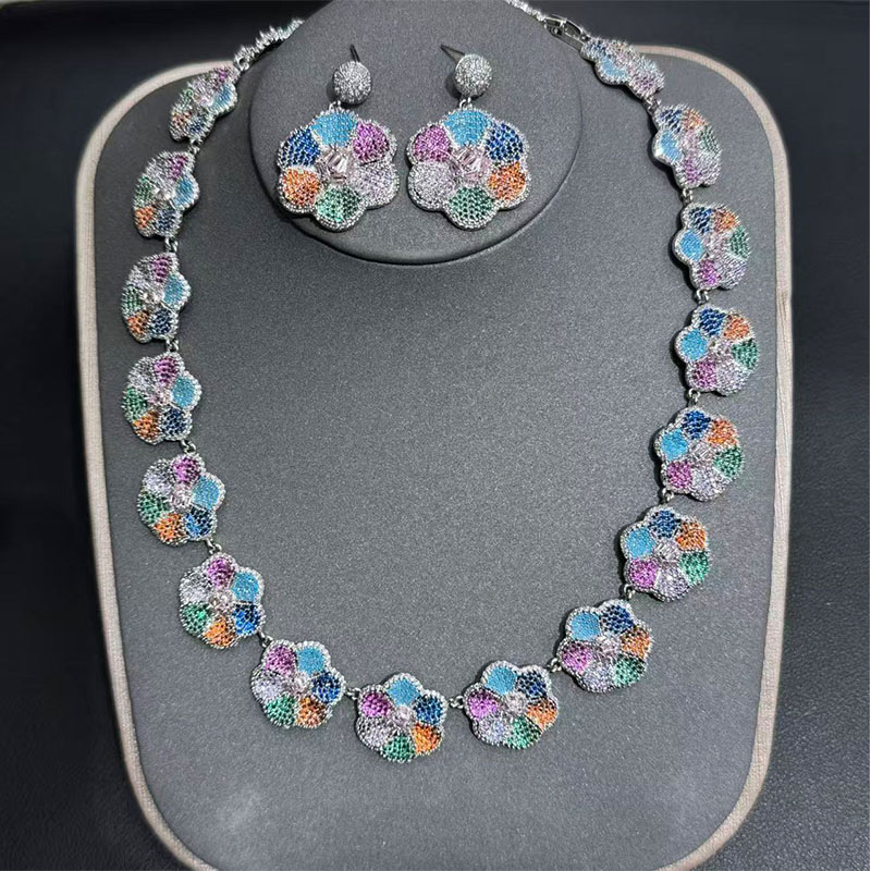 Copper material ,Earrings, bracelets and necklaces set,Zircon jewelry