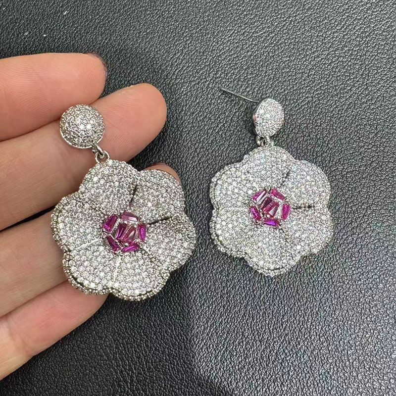 Luxurious, heavy, exaggerated, rich man's party, ball performance, diamond-encrusted, fancy earrings, party dress, elegant suit matching