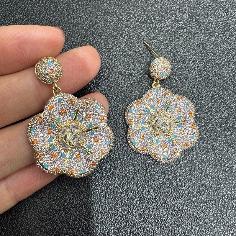 Luxurious, heavy, exaggerated, rich man's party, ball performance, diamond-encrusted, fancy earrings, party dress, elegant suit matching