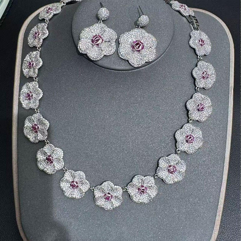 Copper material ,Earrings, bracelets and necklaces set,Zircon jewelry
