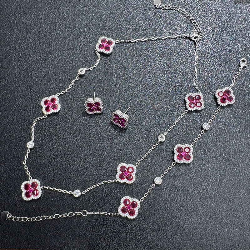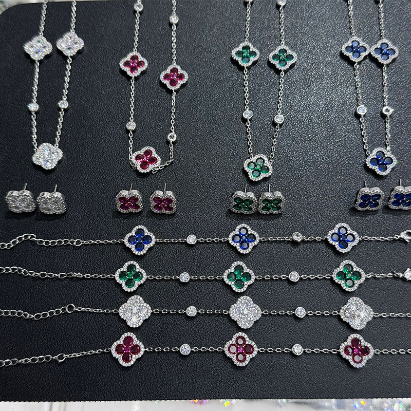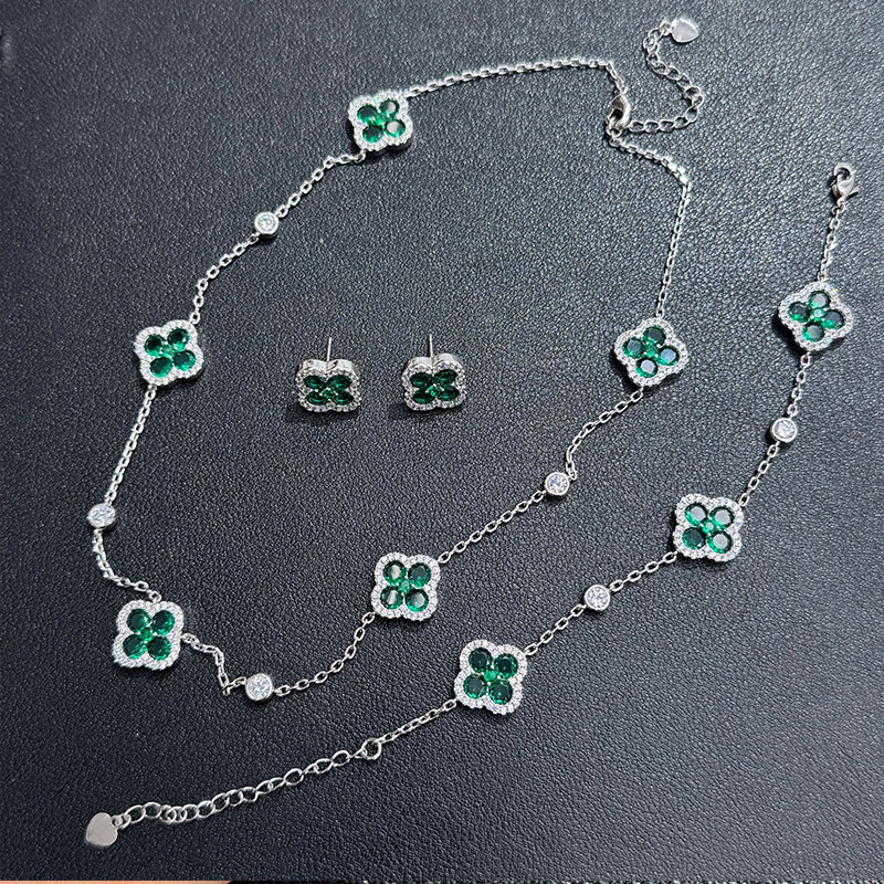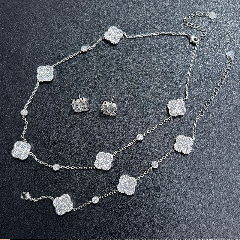 Copper material ,Earrings, bracelets and necklaces set,Zircon jewelry